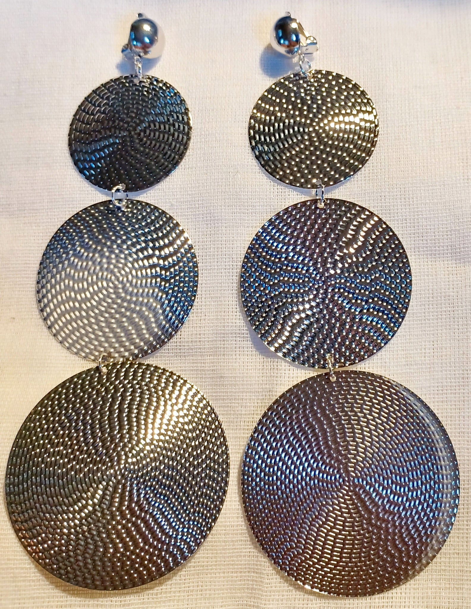 • Load image into Gallery viewer, Extra large hammered disc clip on earrings Kargo Fresh