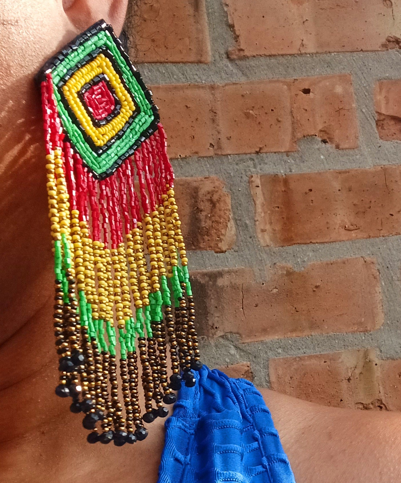 • Load image into Gallery viewer, Fabulous large handbeaded clip on earrings Kargo Fresh