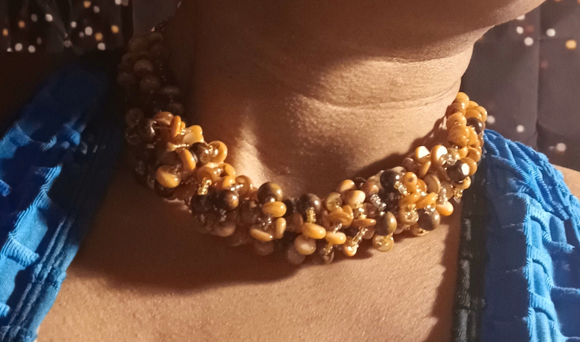 Vintage Handmade glass beads and semi precious beads and beautiful chunky multi layer design