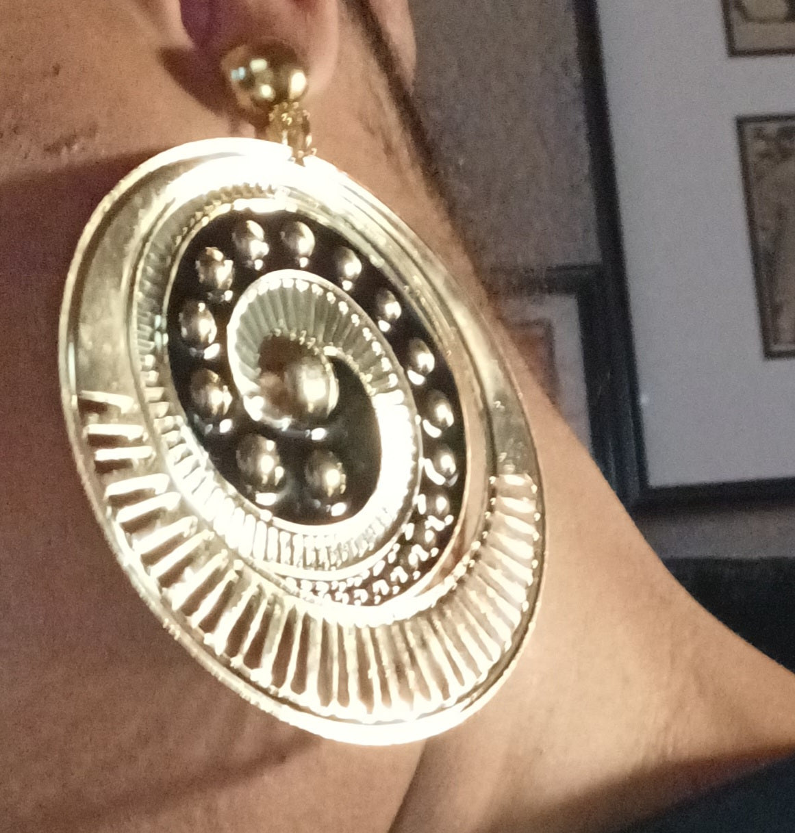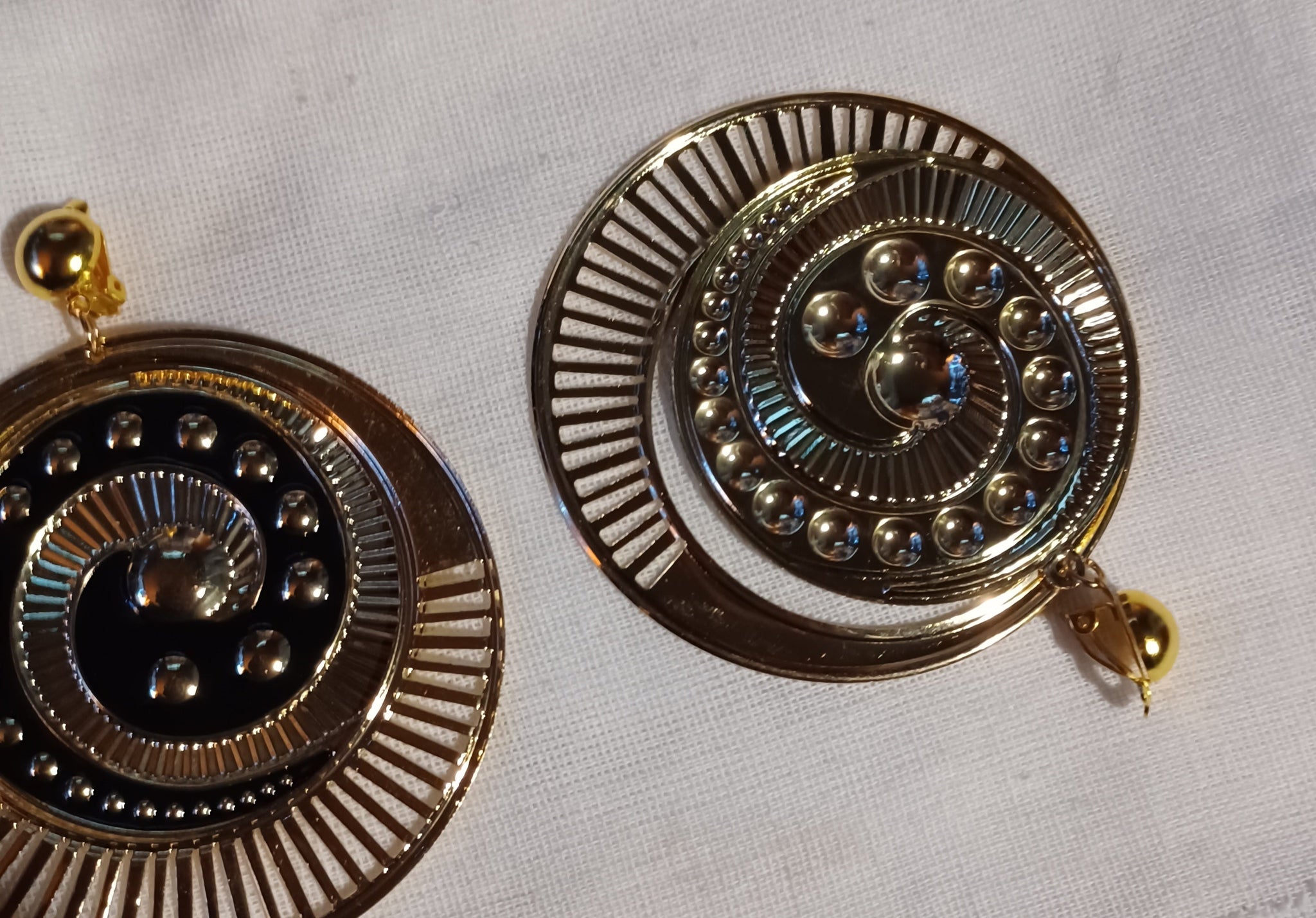 These are so unique and cool Hammered Metal design Clip on Very light and thin metal. These wont pull down on the ear. They are light. These hang 4 inches Handmade originals Very light and easy to wear