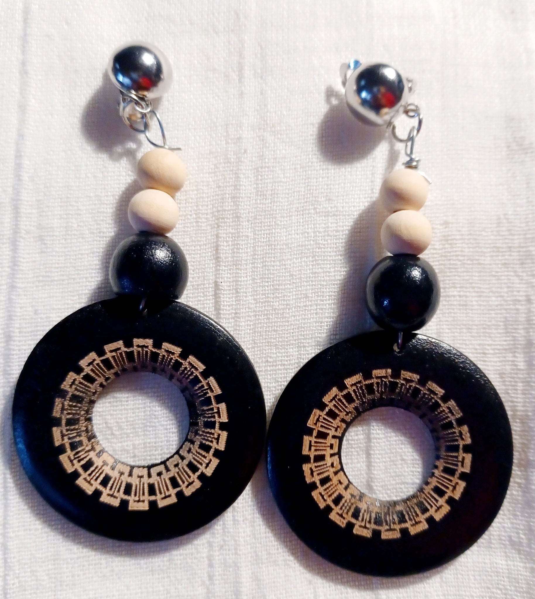 • Load image into Gallery viewer, Handmade boho wood clip on earrings Kargo Fresh