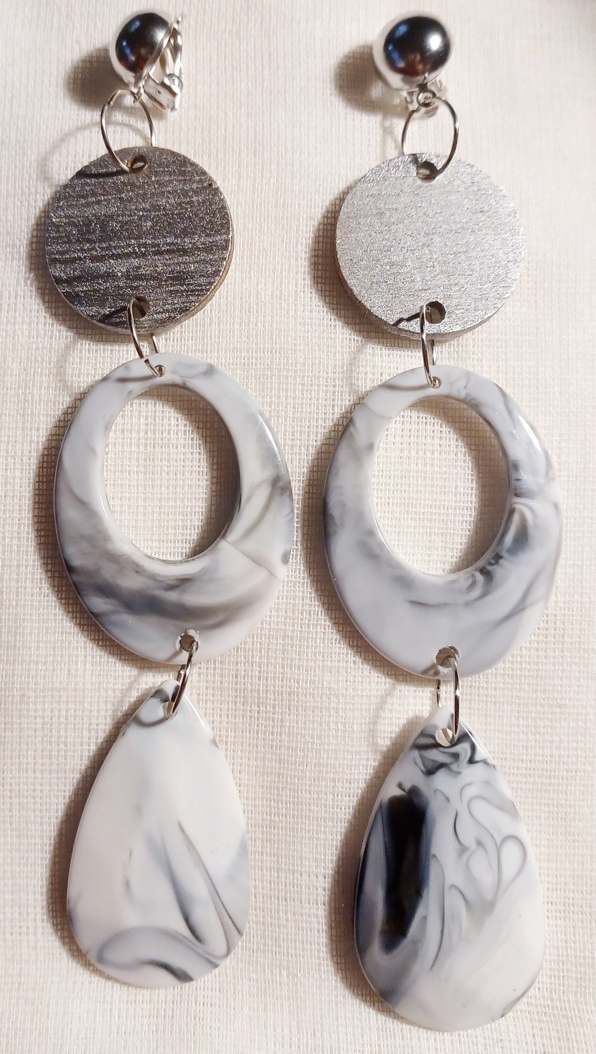 Handmade Light grey acrylic hoop and wood clip on earrings