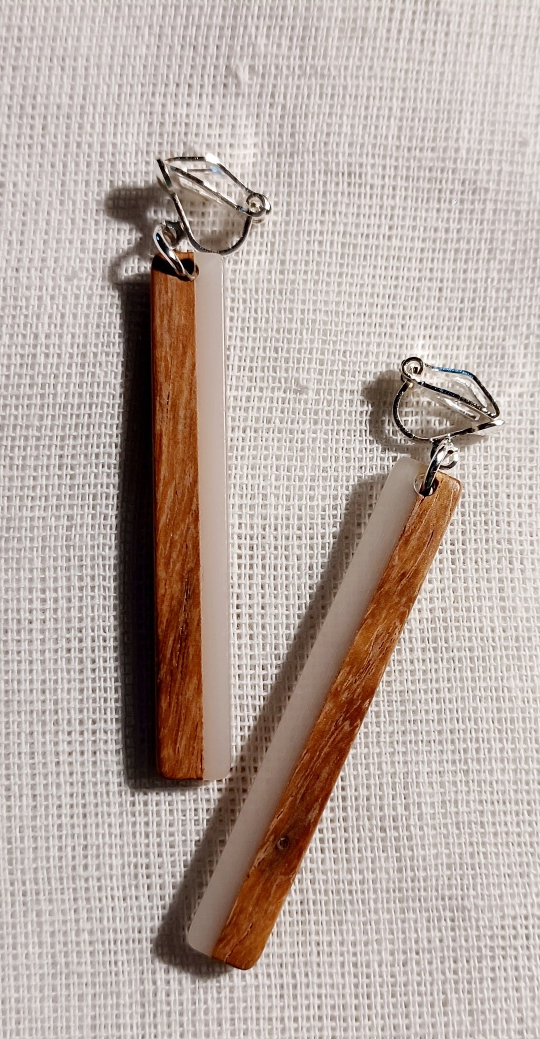 Small lucite and  Natural Wood Clip On Earrings Kargo Fresh