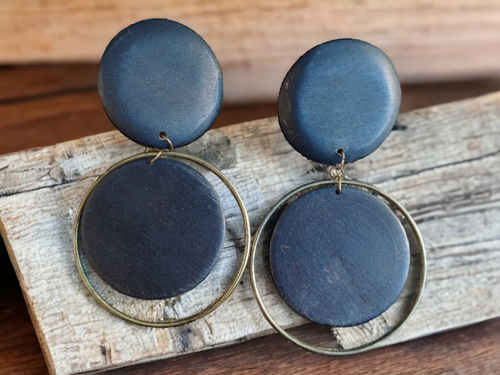 Clip on Handmade Abstract Geometric Design Wooden Earrings