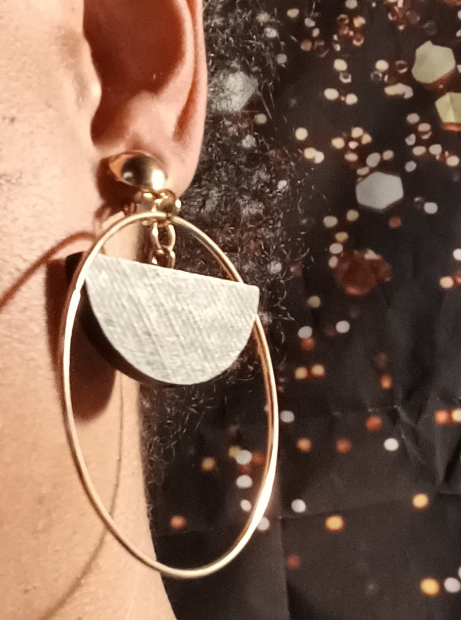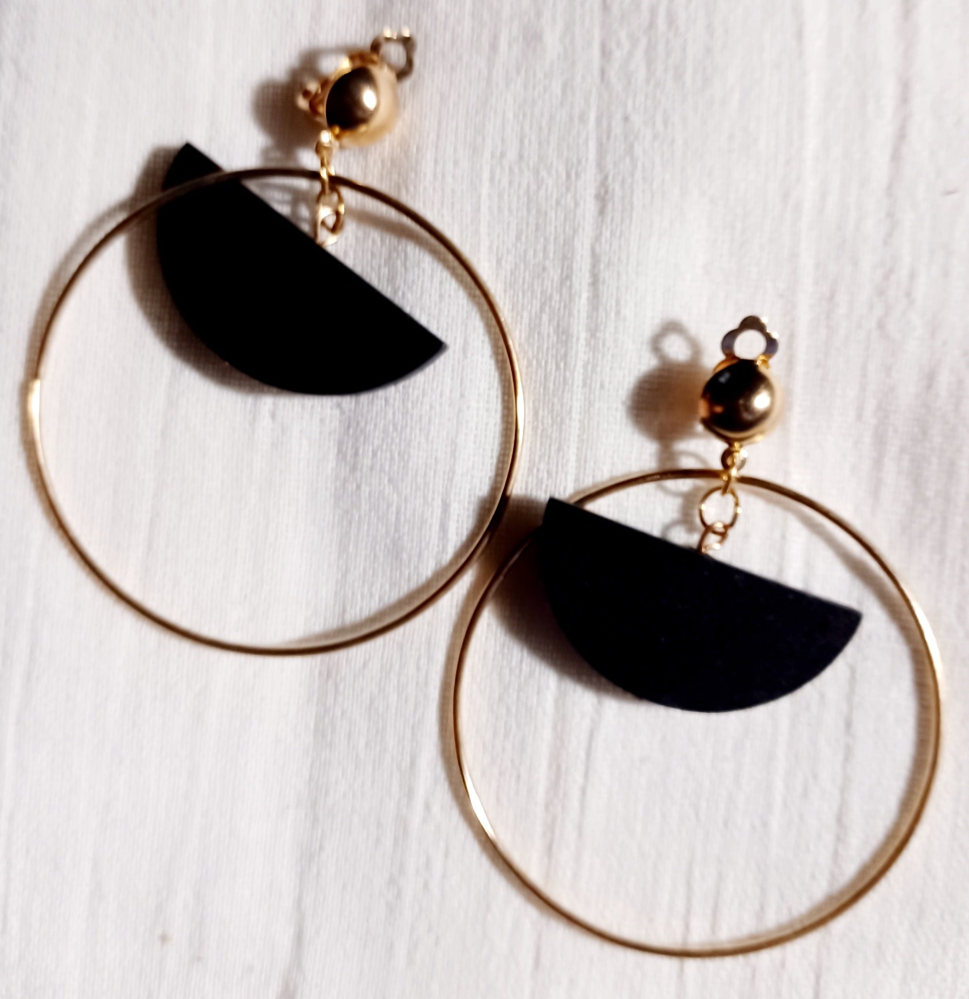 These are unique and and prettyHandmade originalsClip onsThese are light wood and wont pull down on the ear. Gold clip on closureThey hang 3 inches These are very lightweight on the earEasy to wearVery light