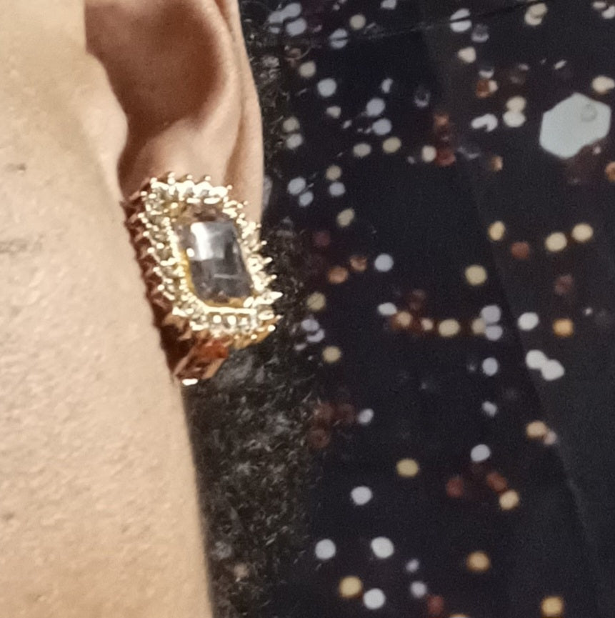 Blingy and beautiful style and size a nice size Gold metal with blingy lilac and clear crystals Very lightweight Classic addition to any wardrobe Very blingy styleClip on