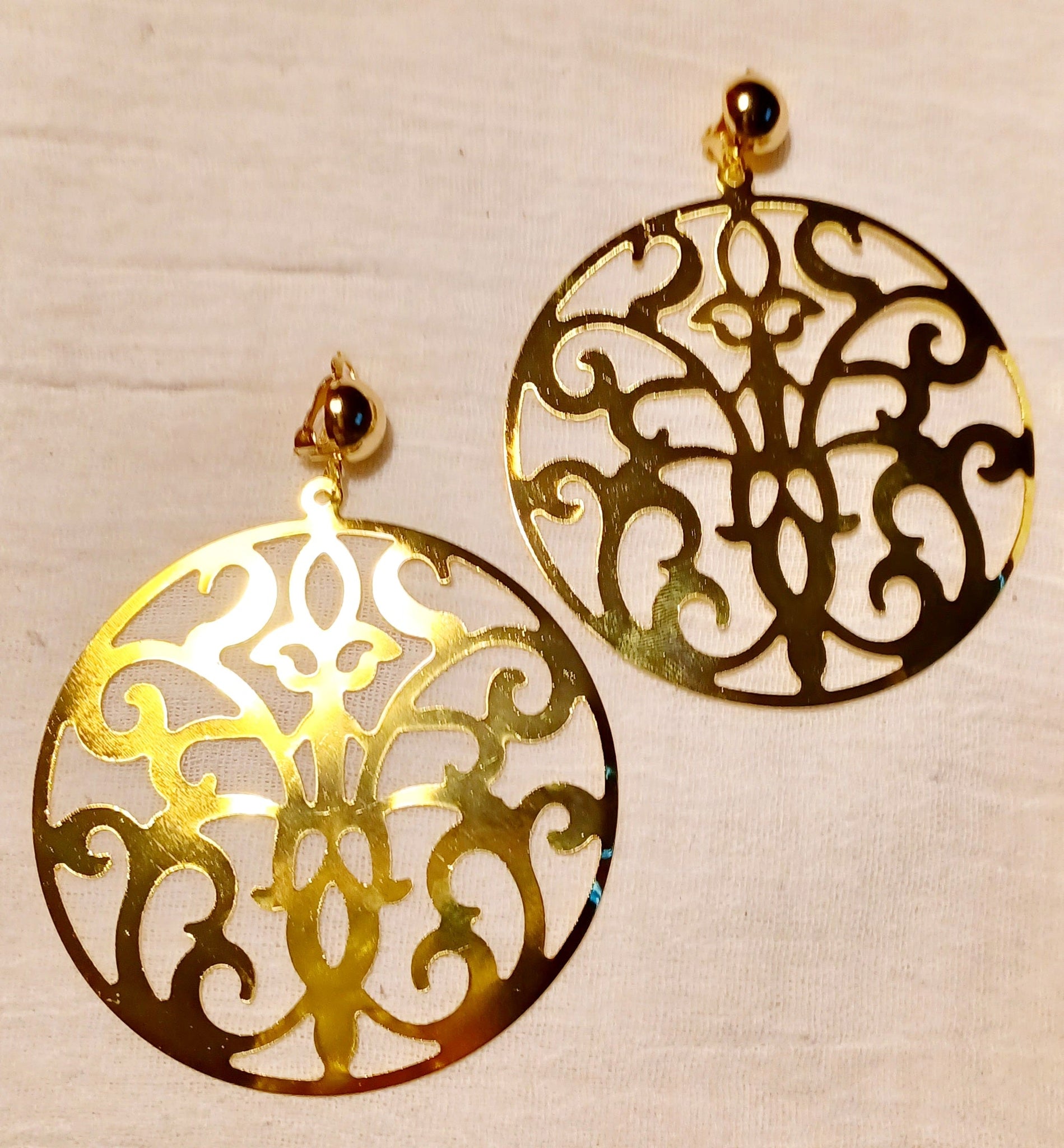 Clip On  Abstract Disc Dangle Earrings gold Kargo Fresh