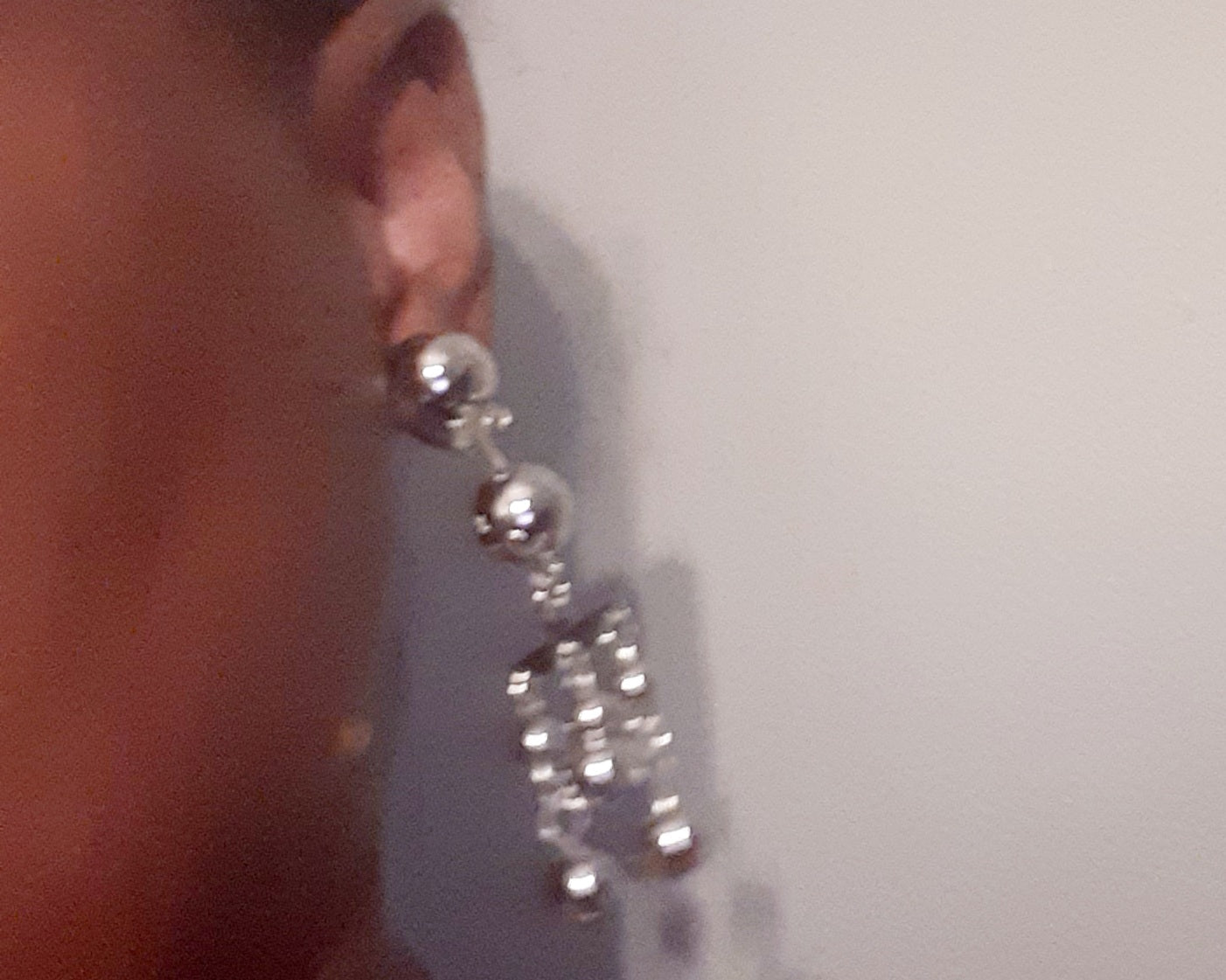 • Load image into Gallery viewer, Clip On Silver Ball Abstract Dangle Earrings Kargo Fresh