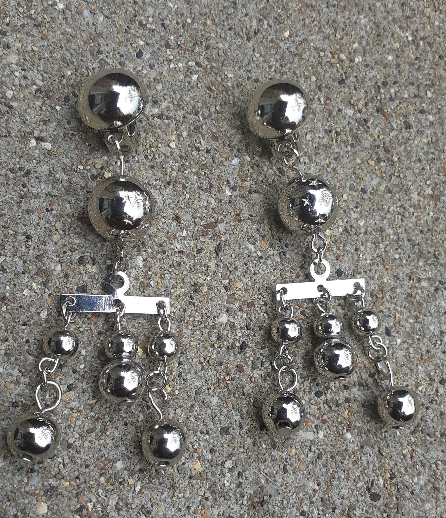 Clip On Silver Ball Abstract Dangle Earrings Kargo Fresh