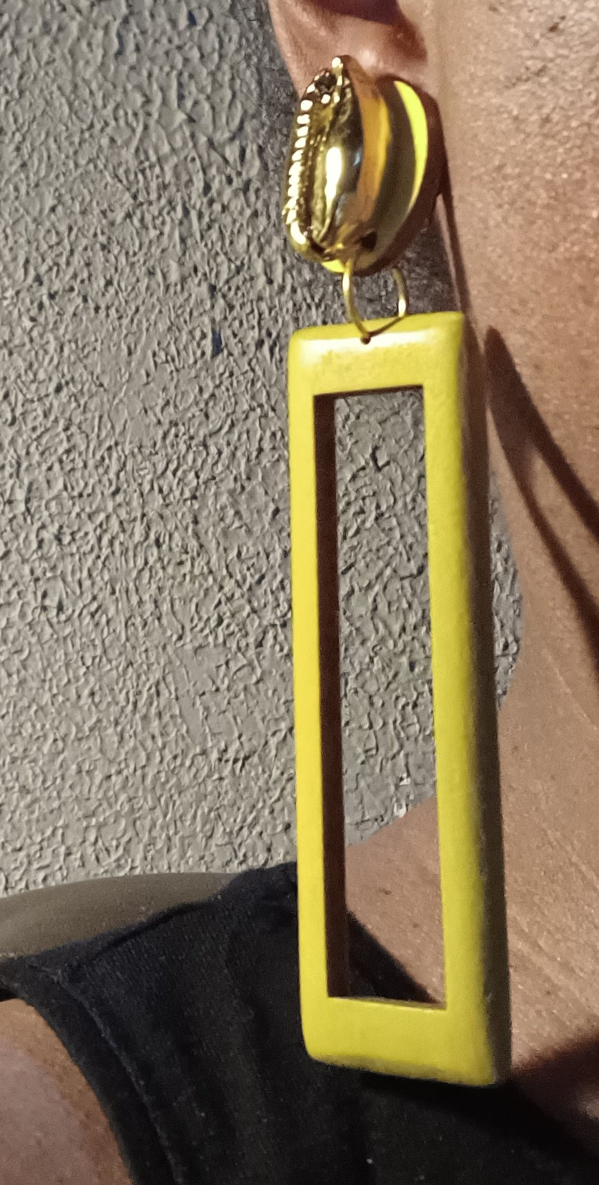 • Load image into Gallery viewer, Handmade wood and cowrie clip on earrings