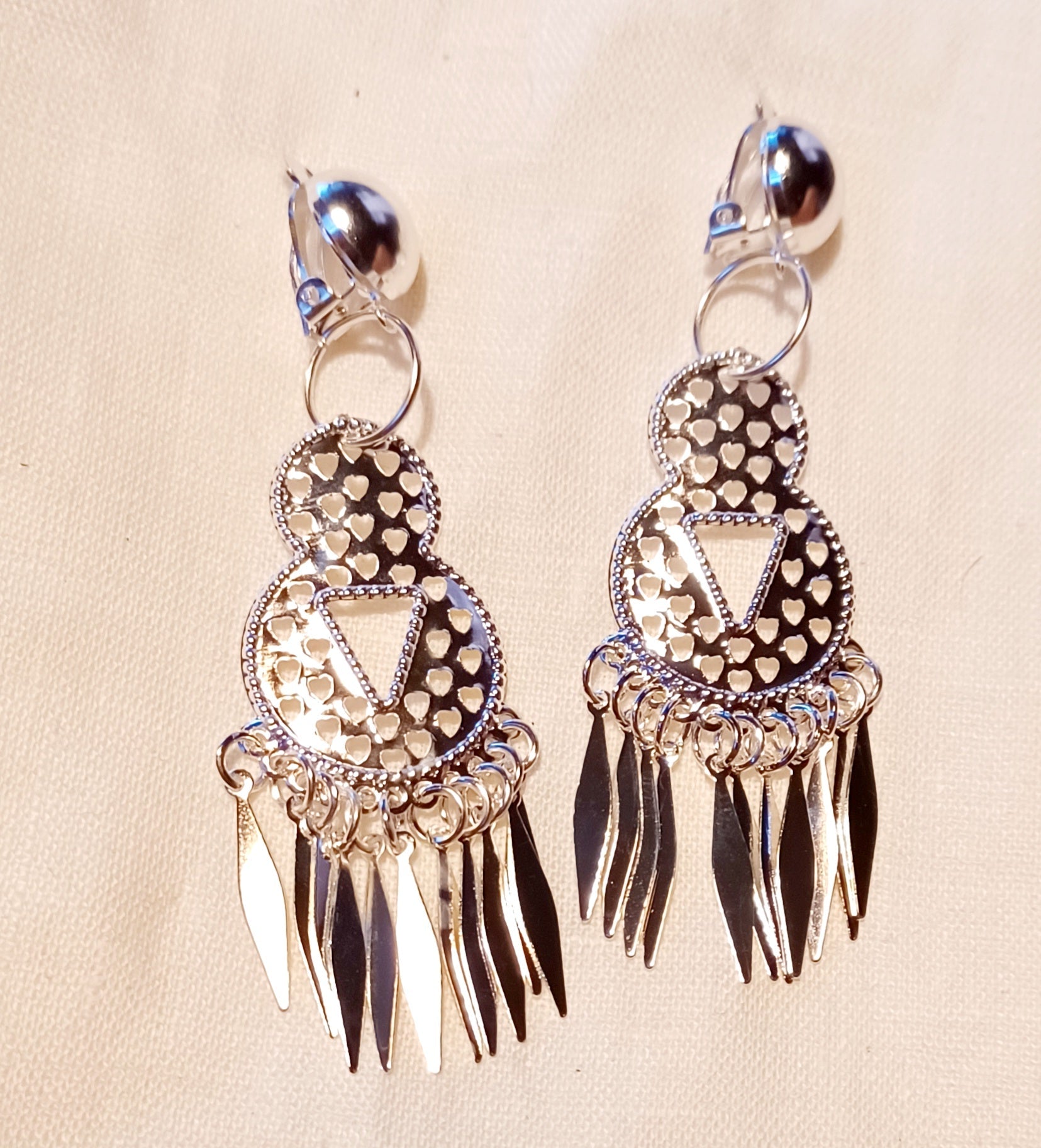Silver Abstract  metal tassel design Clip On Earrings Kargo Fresh