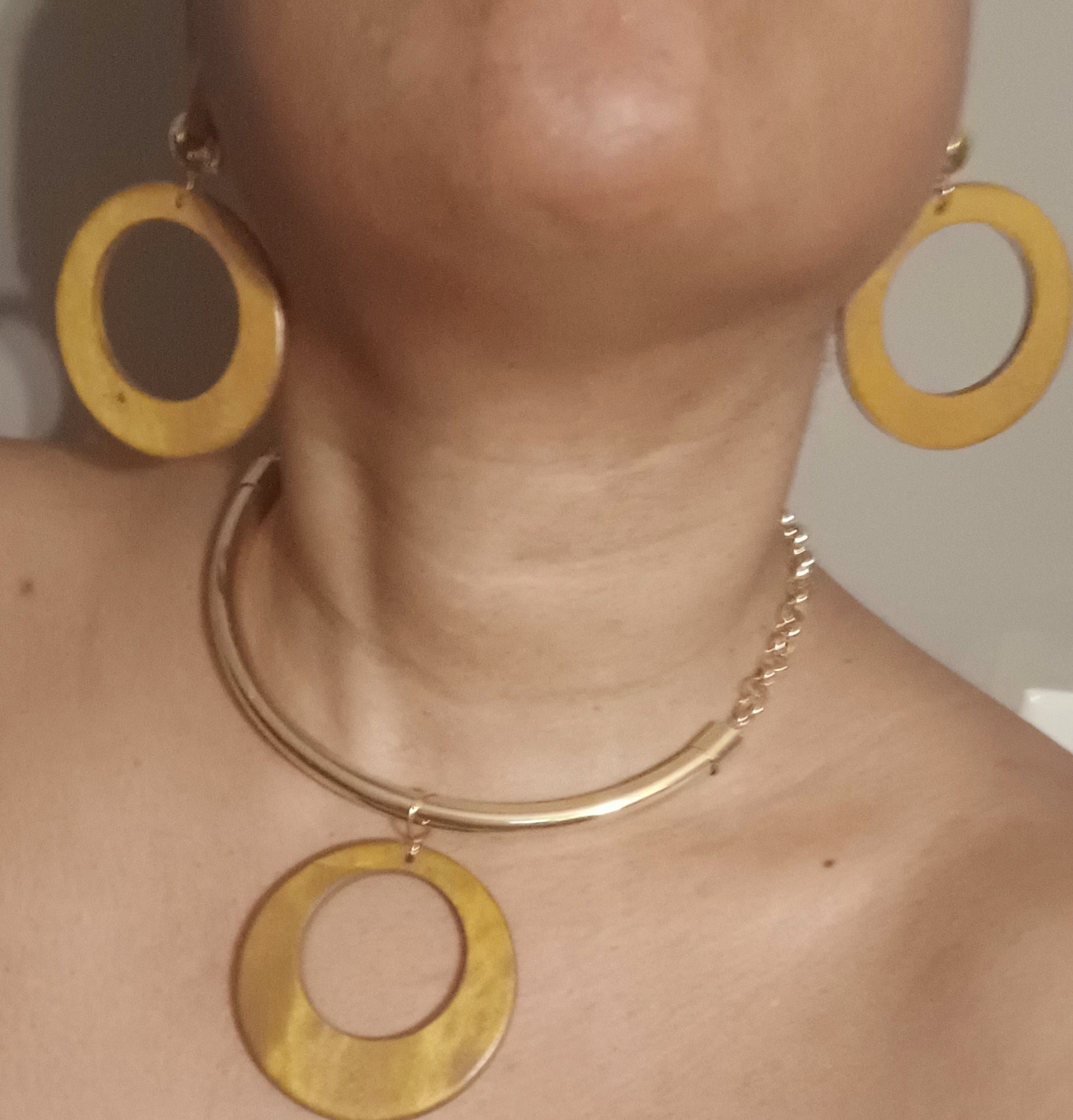 Handmade wooden hoop clip on necklace set Kargo Fresh