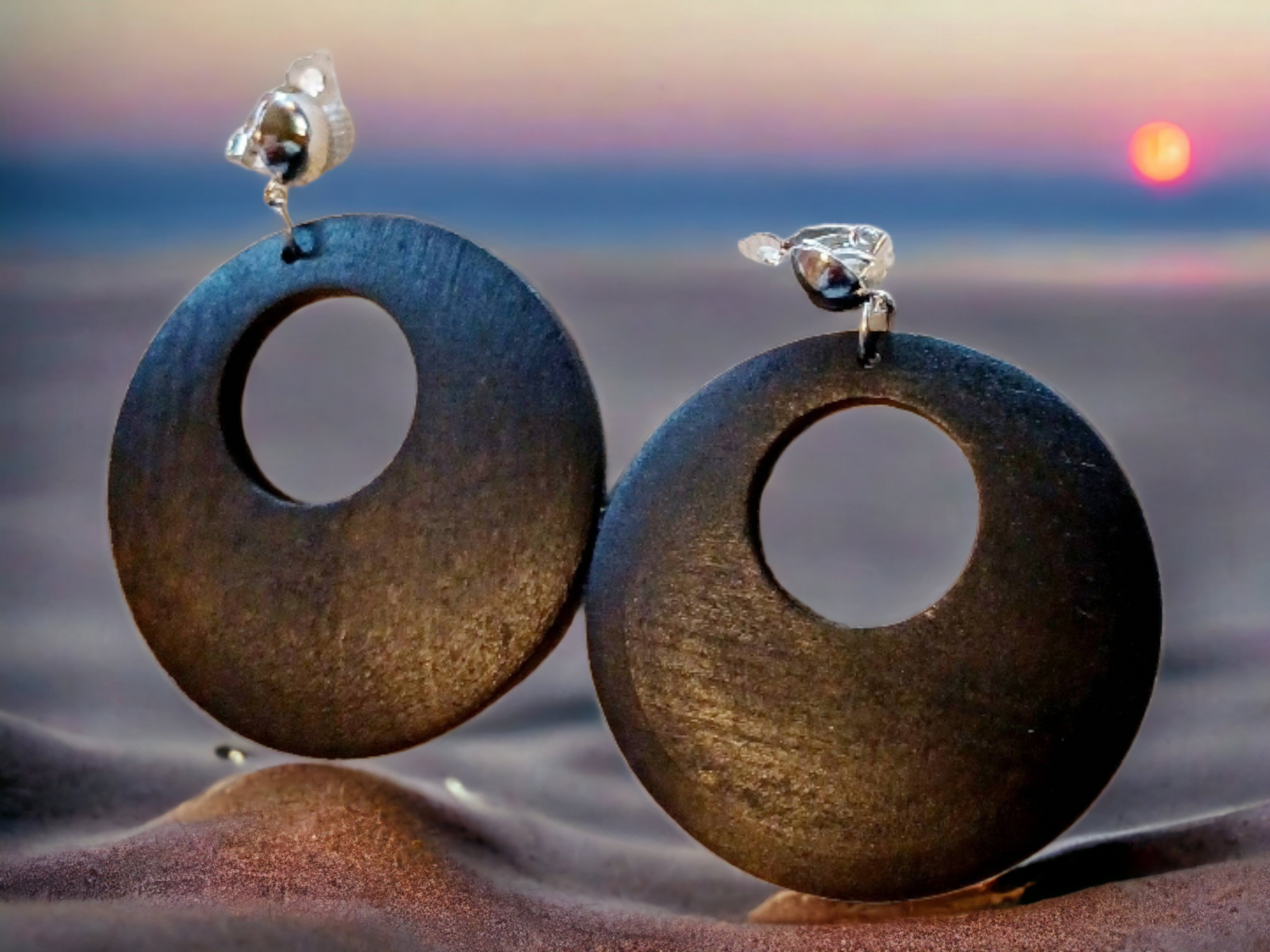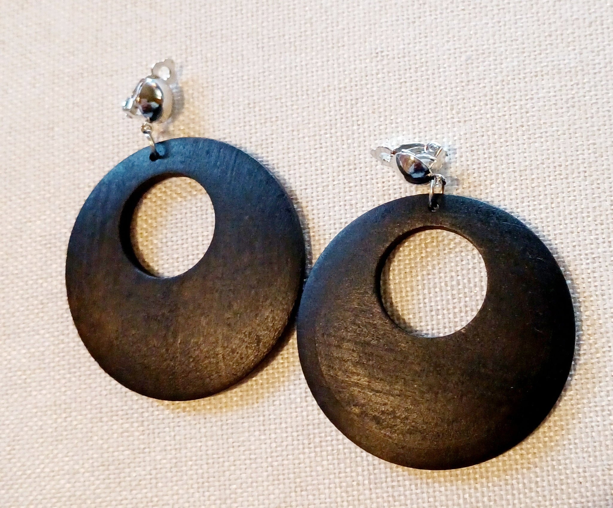 • Load image into Gallery viewer, Classic wood hoop Clip On Earrings Kargo Fresh