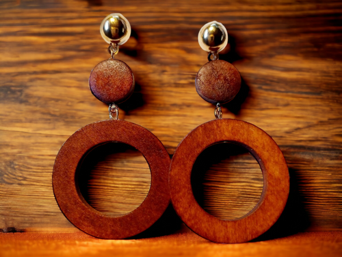 Habdpainted Clip on Wooden Bamboo Hoop Earrings