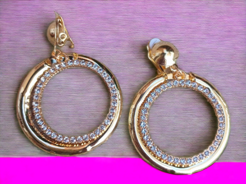 Handmade Gold Blingy Clip on Hoop Earrings 2.5 inch