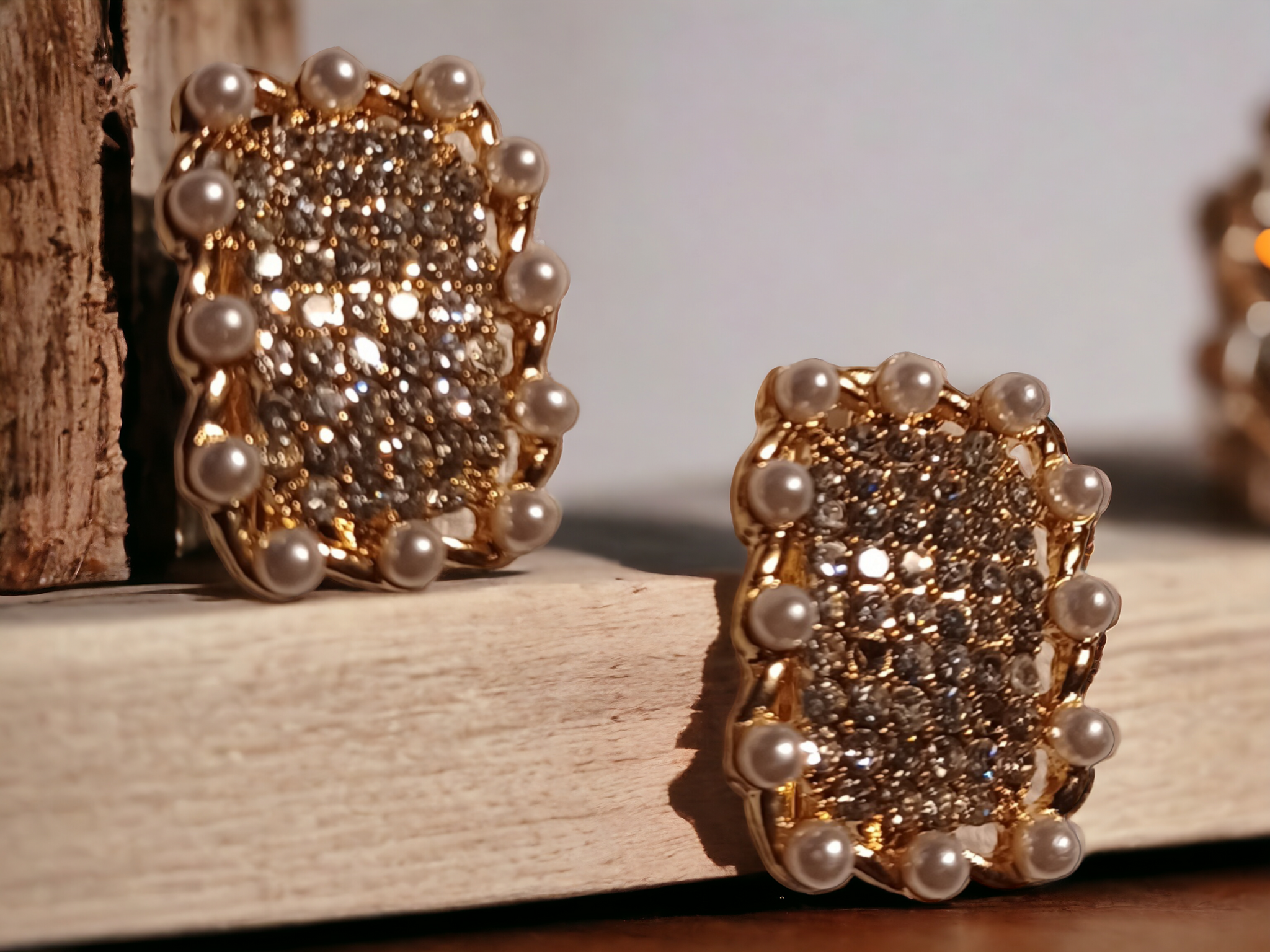 • Load image into Gallery viewer, Faux pearl and rhinestone clip on earrings
