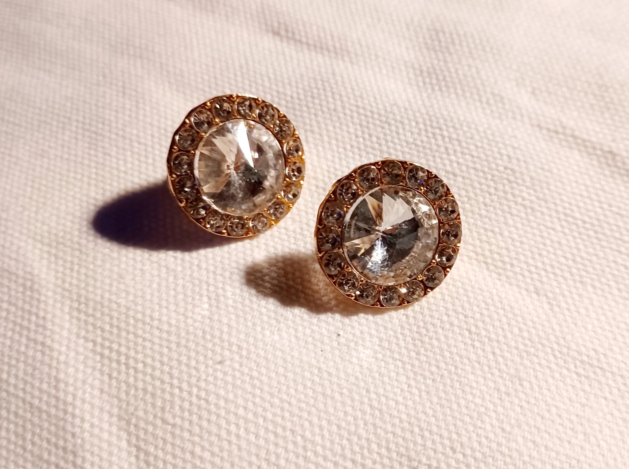 • Load image into Gallery viewer, Rhinestone stud cluster clip on earrings