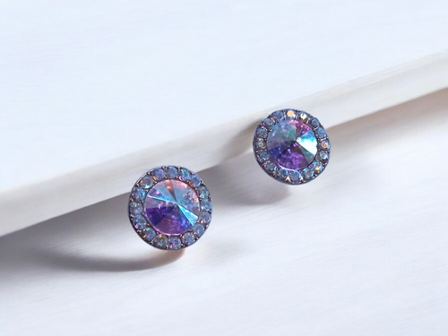 Clip on Rhinestone Cluster Heart Stud Earrings