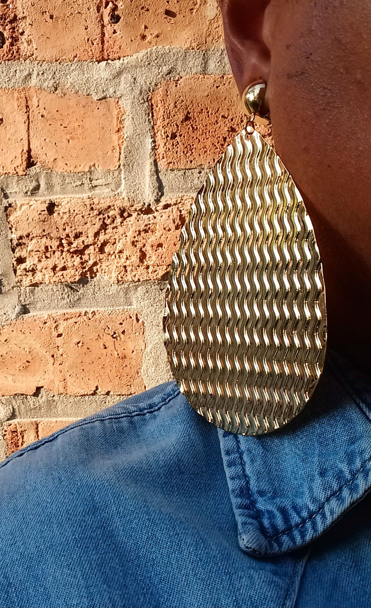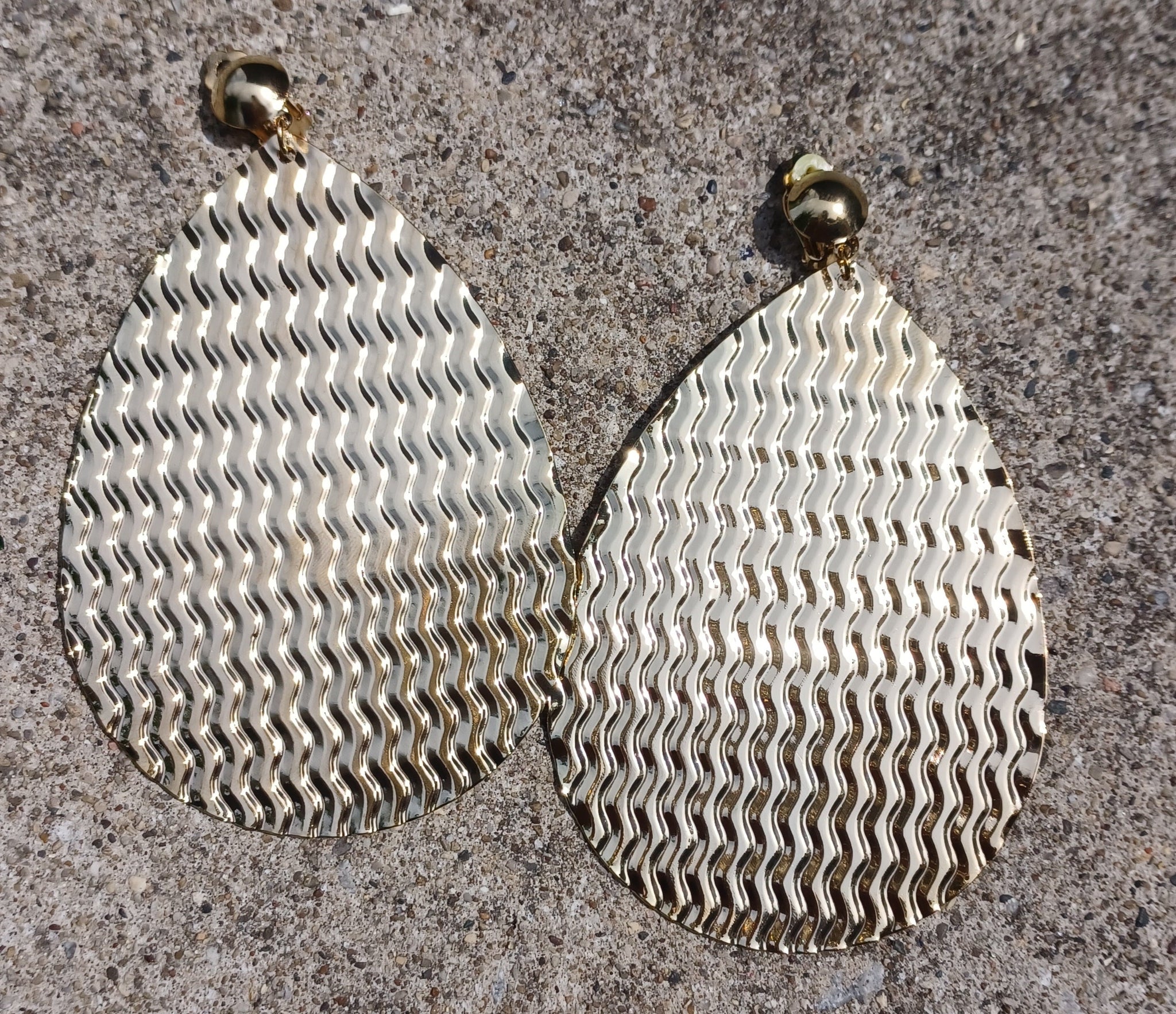 Gold Extra Large Abstract Disc Dangle Clip on Earrings Kargo Fresh