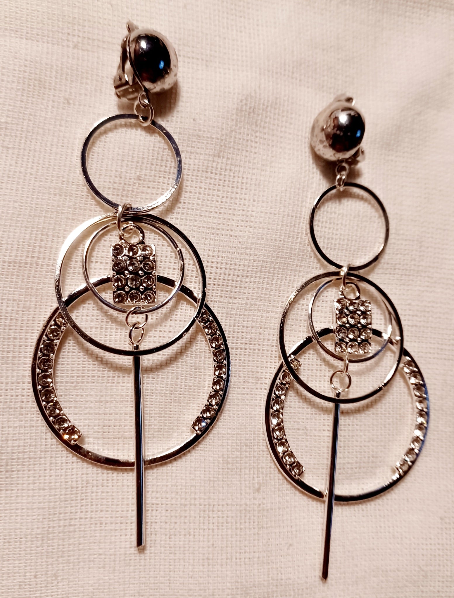 Handmade silver Blingy  Clip on Hoop Earrings 3 inch Kargo Fresh