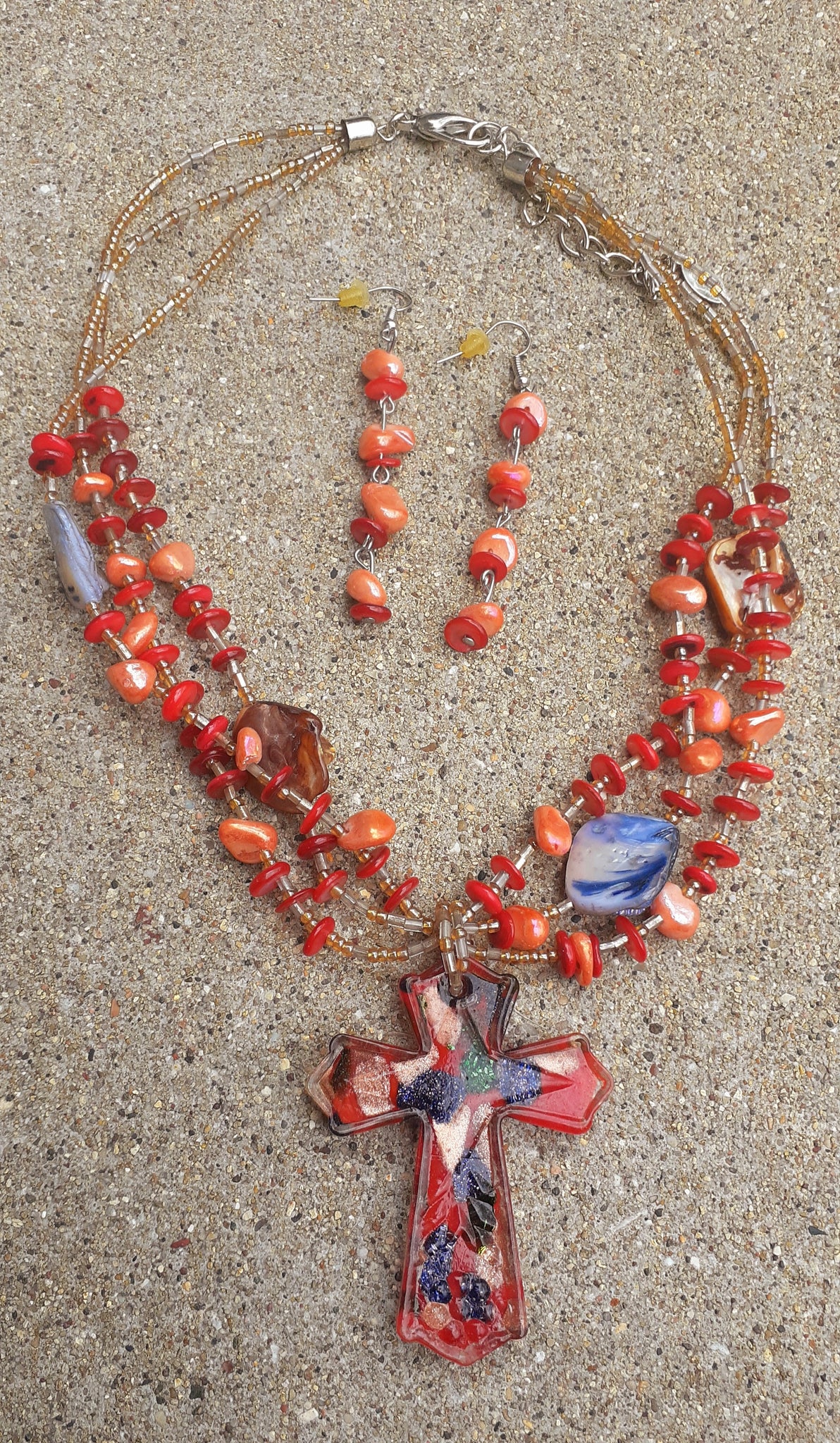 Vintage hand blown glass beads and beautiful cross design