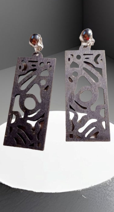 Natural wood Abstract Design Clip On Earrings Kargo Fresh