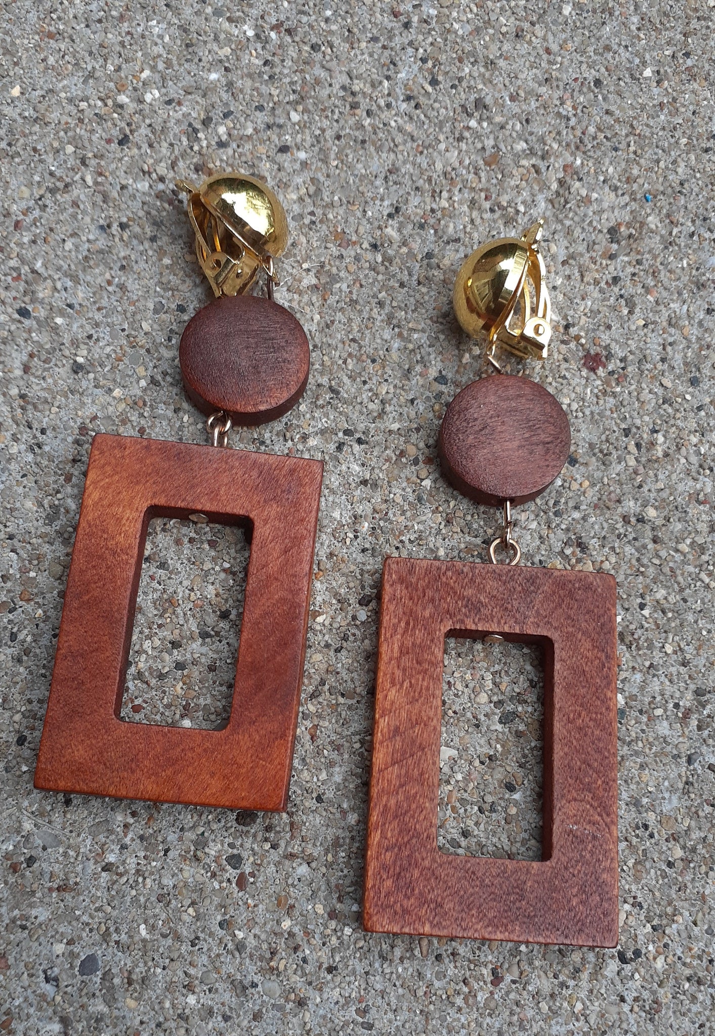Very unique and natural All wood and medium and light size Very lightweight on the ear These hang about 2 inches