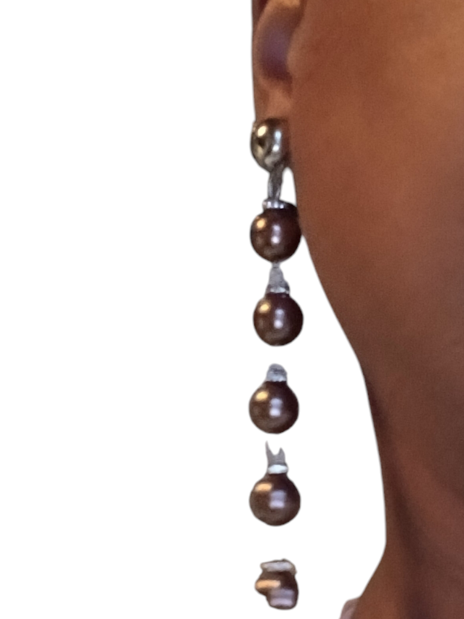 Brown Faux Pearl dangle Clip On Earrings