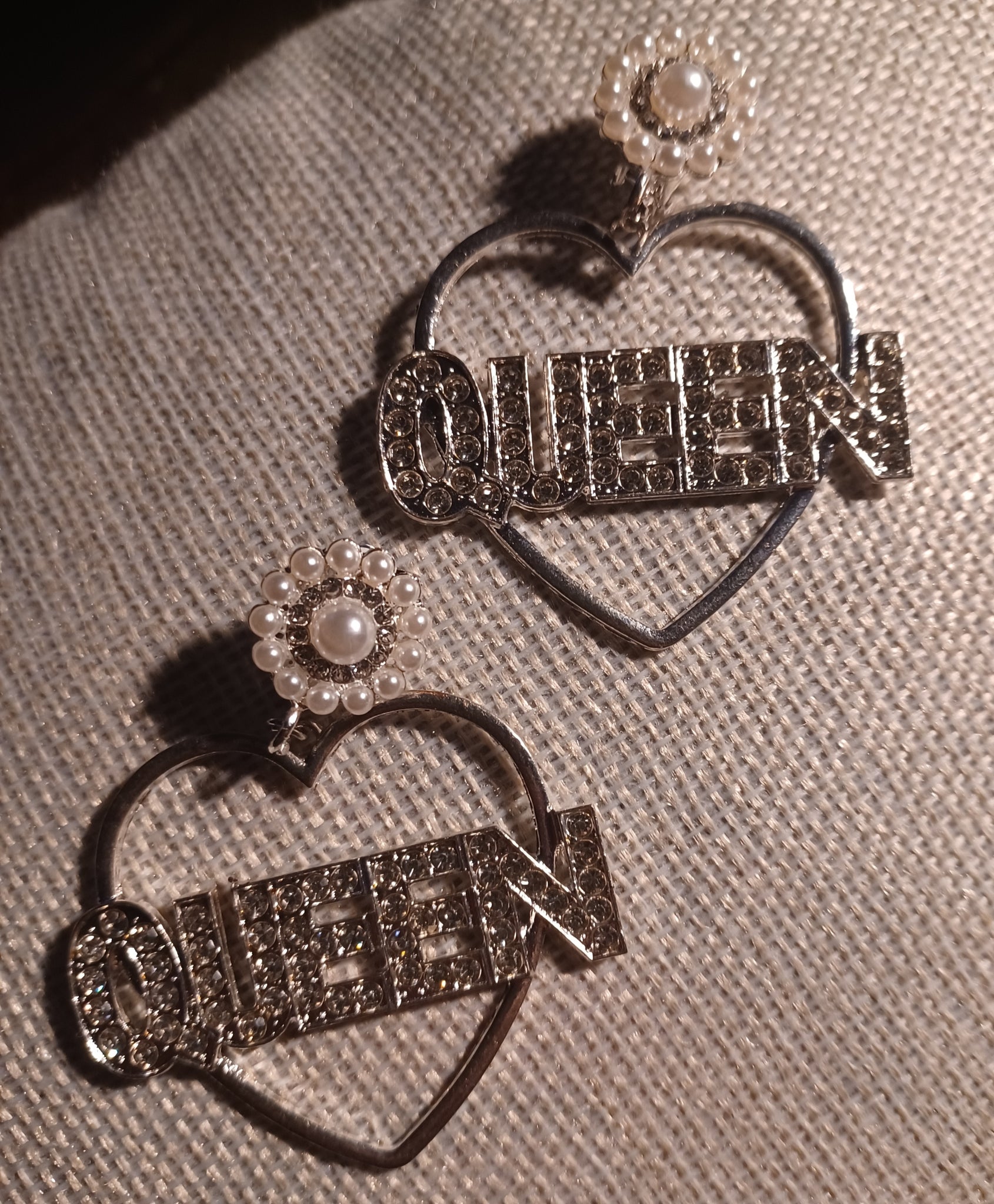 • Load image into Gallery viewer, Handmade rhinestone Queen clip on earrings