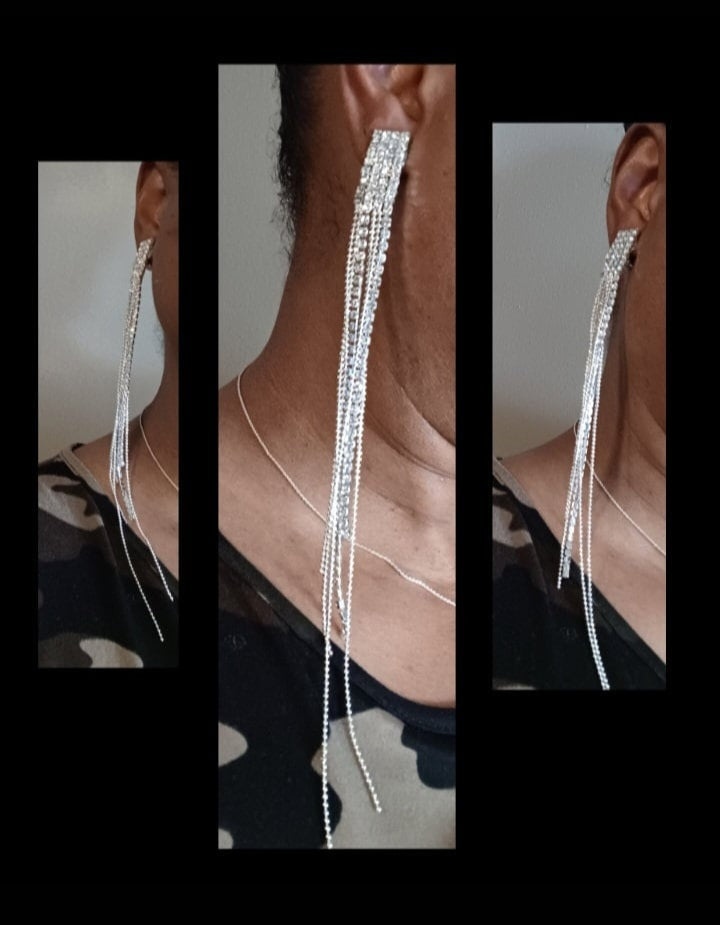 Glam handmade runway rhinestone clip on earrings 9 inch Kargo Fresh