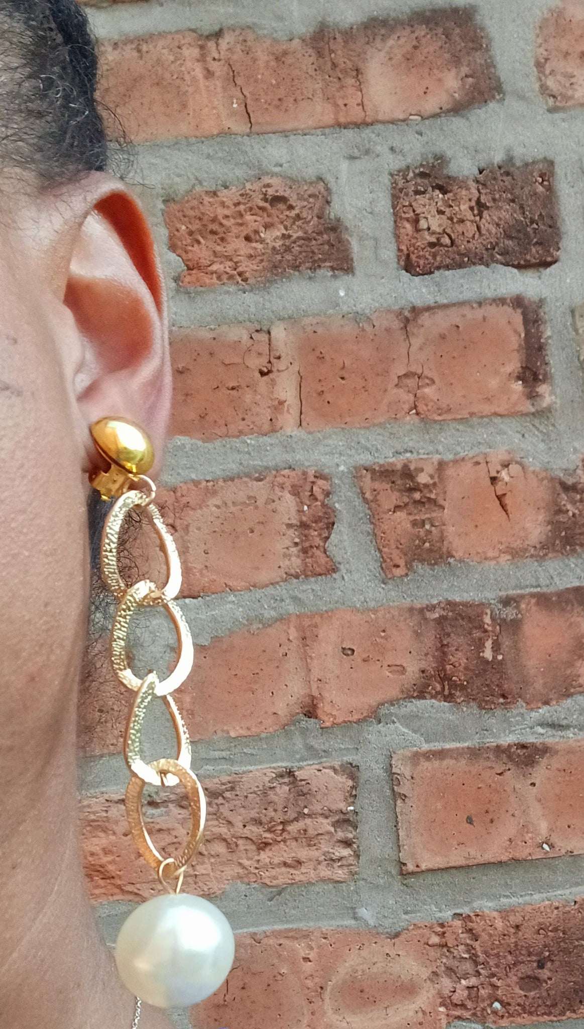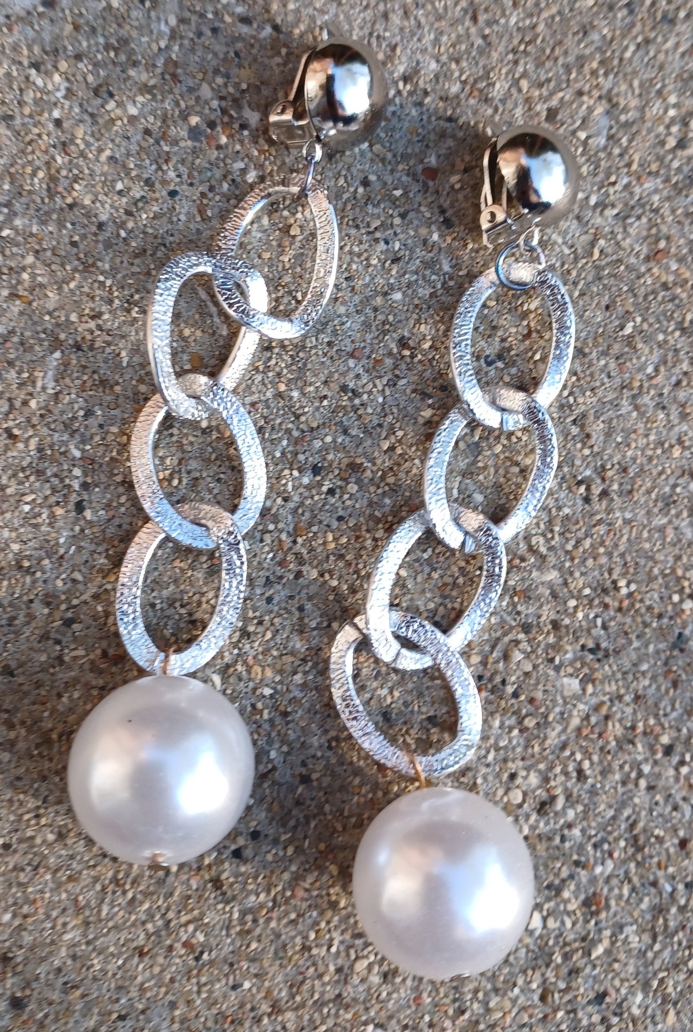 Handmade faux pearl and chain clip on earrings silver Kargo Fresh