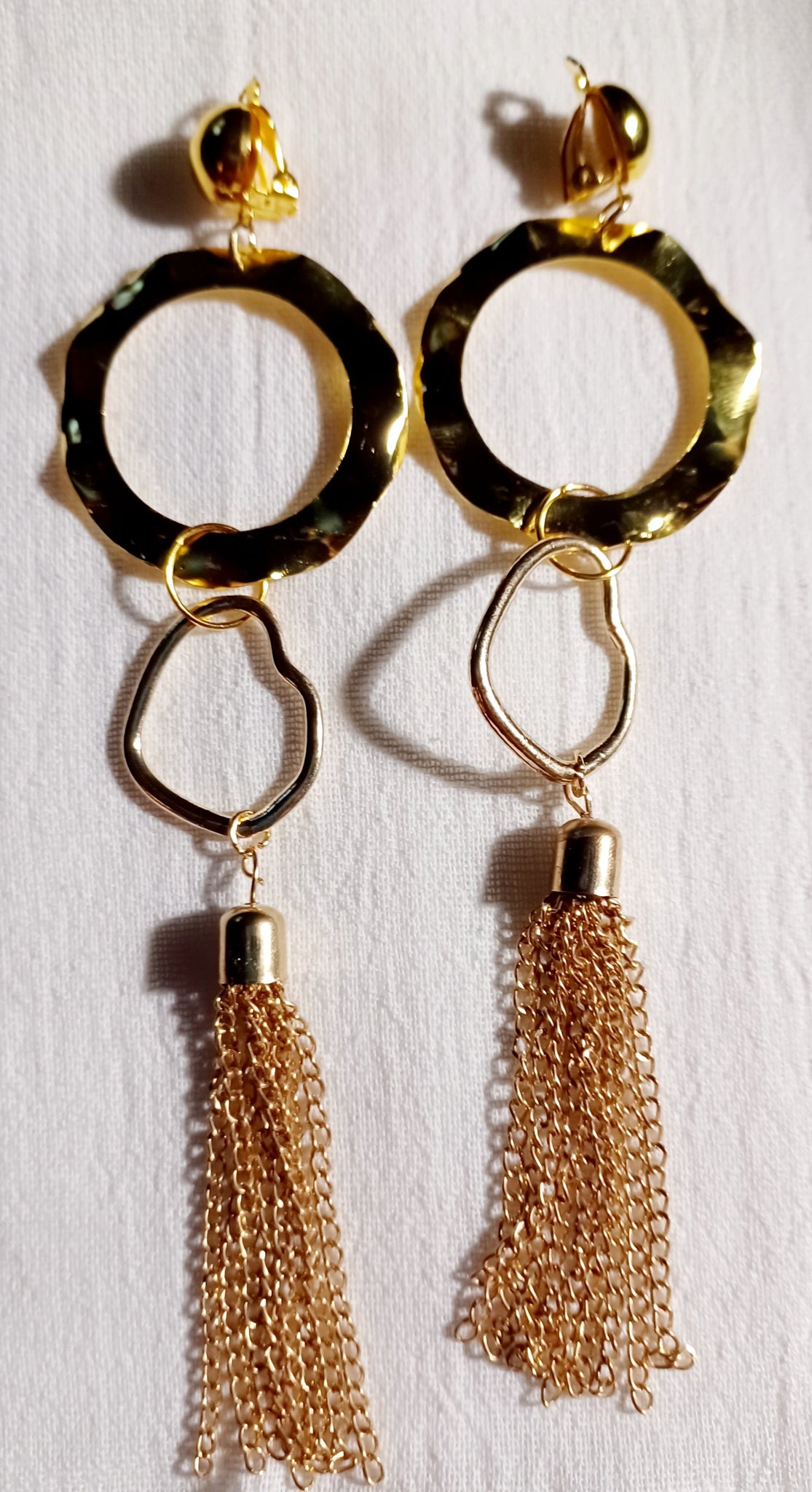 Handmade gold chain clip on dangle earrings Kargo Fresh