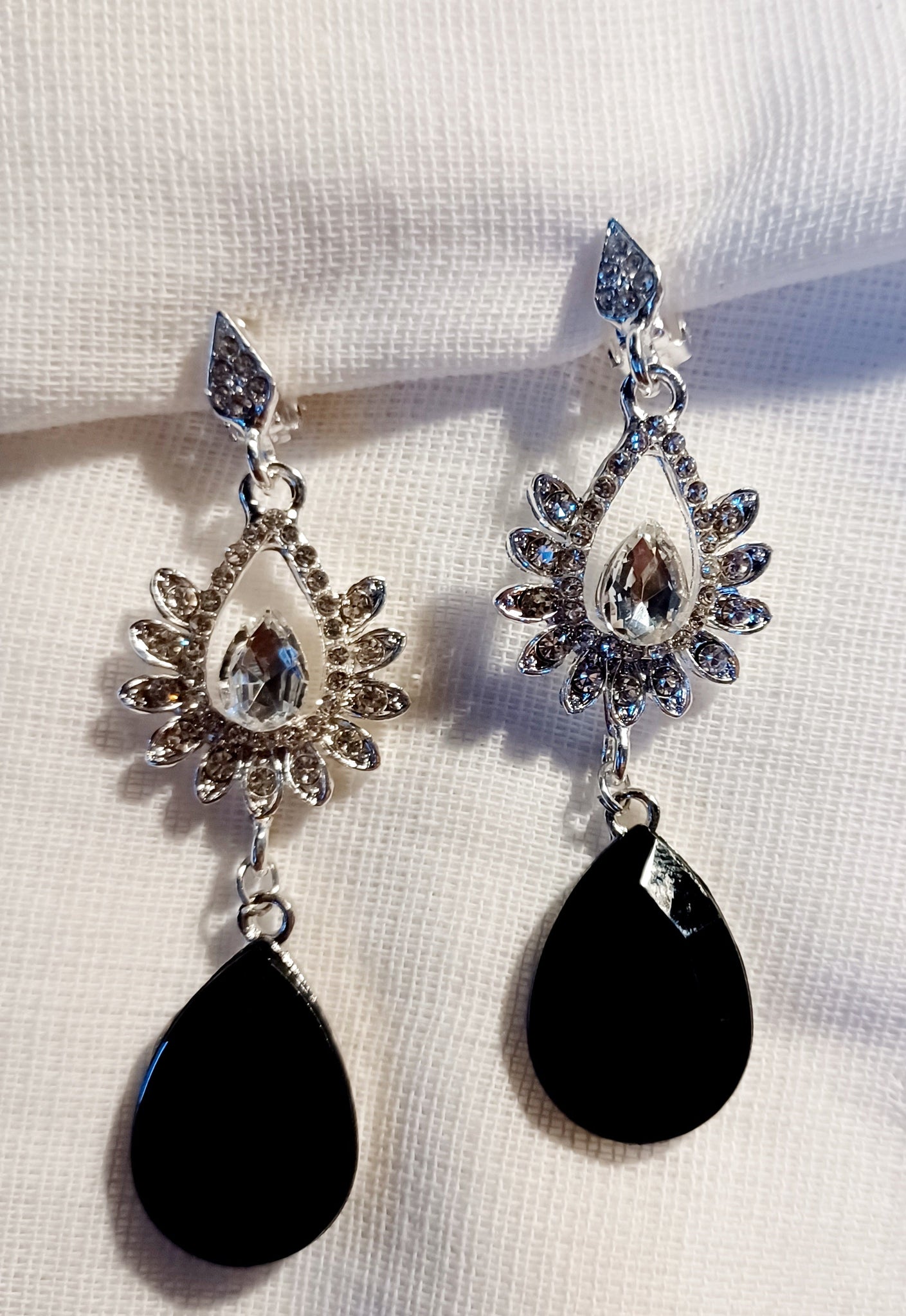 Handmade rhinestone dangle clip on earrings