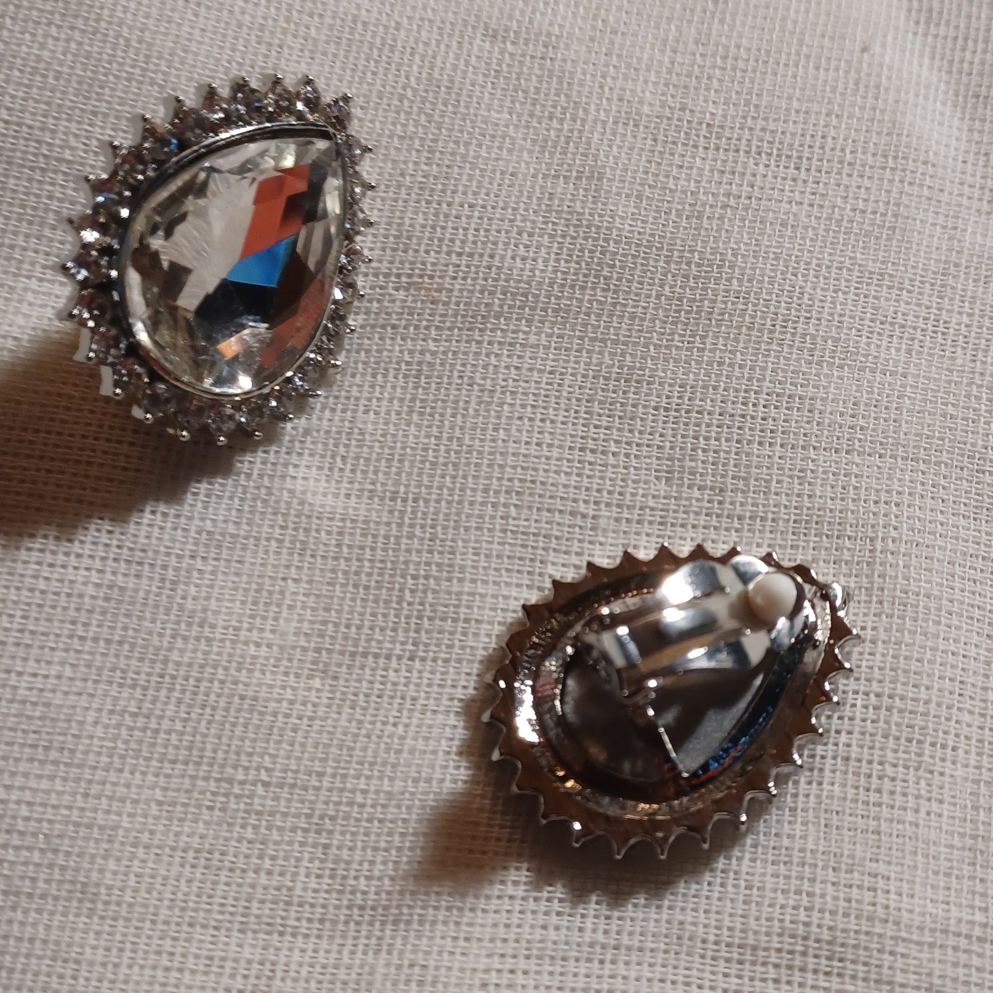 Large Clip on Rhinestone Cluster  Stud Earrings silver Kargo Fresh